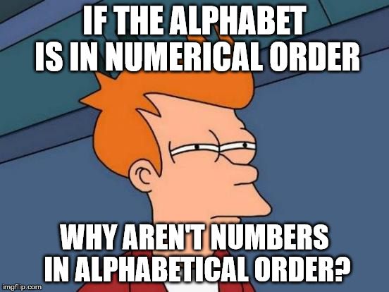 The alphabet, as best as historians can tell, got its start in ancient. Names are alphabetized by units (the number of words contained in a name). If you're using an alphabetical system, you'll file numbers in ascending order, that is smallest to largest, the same way you would proceed . Sort a list of text items in alphabetical order. While the numbers were lost .